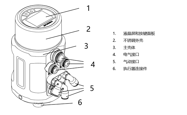 将定位器与阀门连接之后,定位器可与阀门之间做角度调整。若需要调整定位器操作界面角度,松开A处的内六角紧定螺钉后,顺时针或逆时针180°范围内调整到需要的角度,再拧紧紧定螺钉。